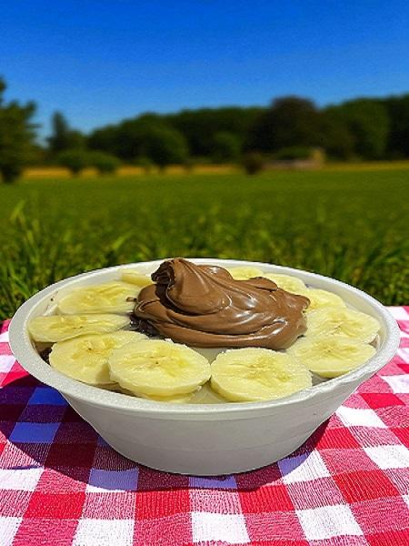 Açai cremoso com leite em pó, granola, leite condensado, banana e creme de avelã - Perfeito a cada colherada!