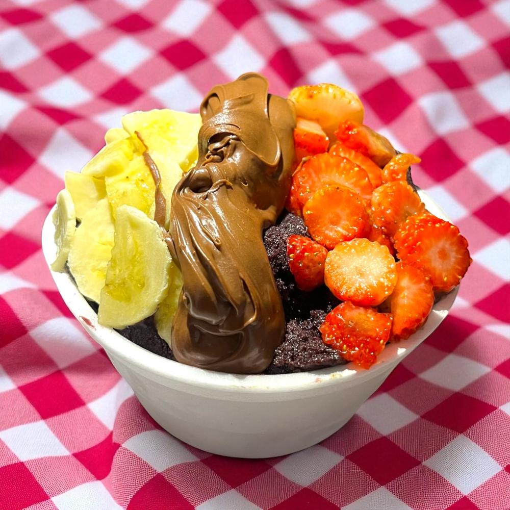 Açaí cremoso colm leite em pó, leite condensado, morango, creme de avelã e chantily - Delícia que combina com qualquer momento!