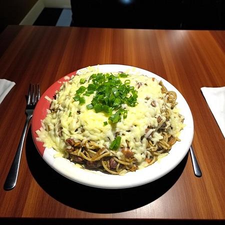 Delicioso macarrão na chapa, preparado com bacon, peito de frango, tomate, cenoura, cebola, mussarela e molhos especiais preparados na hora. Peça o seu e aproveite!