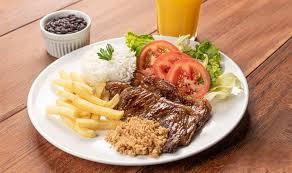 Arroz, Feijao, Macarrao ou Farofa ou Batata Frita (de acordo com a disponibilidade do dia), Salada e uma carne a sua escolha.